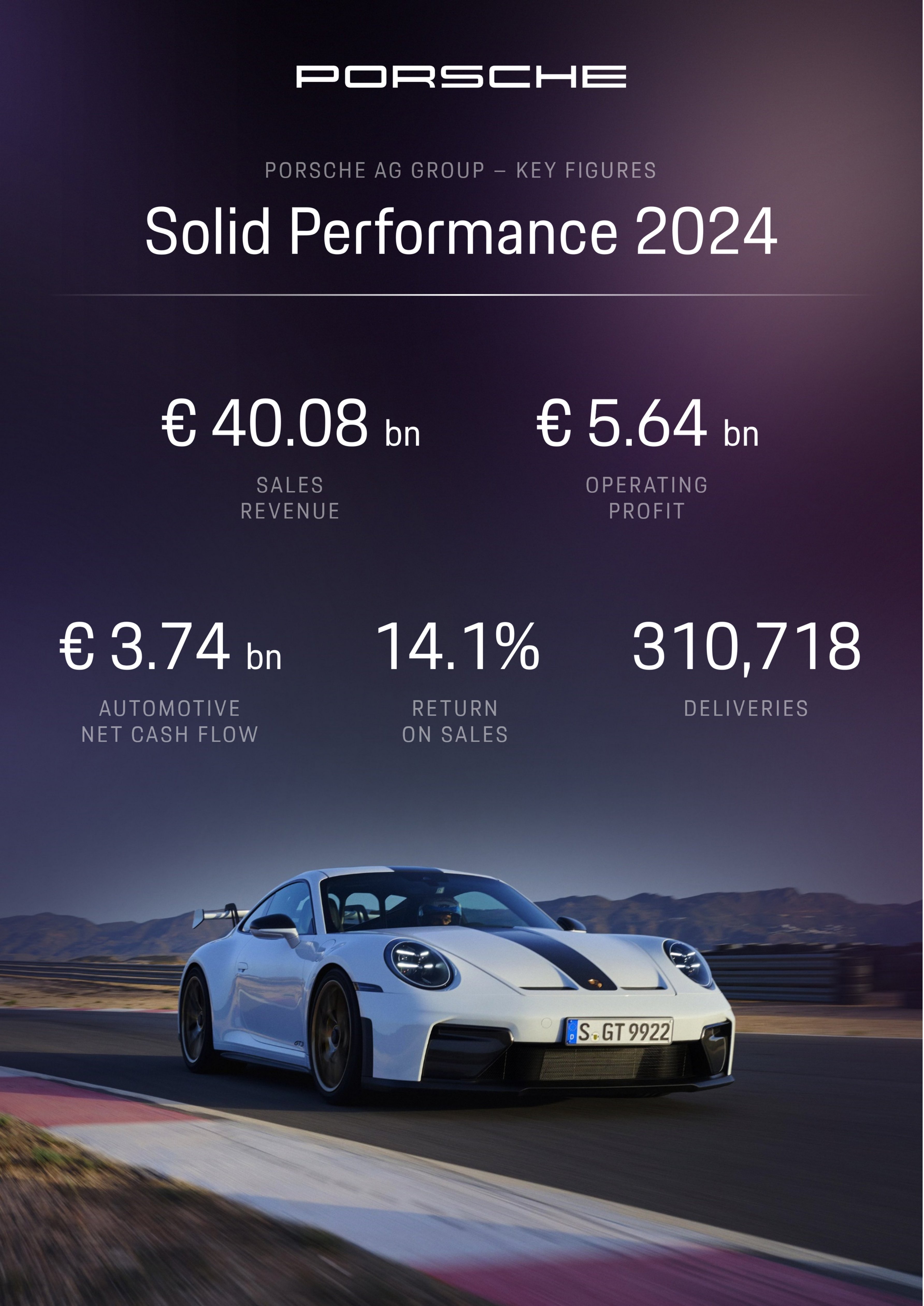- CFO Dr Jochen Breckner: “Porsche has proven in 2024 that we operate highly profitably even in challenging times. In the long term, we remain committed to our fundamental goal of a Group operating return on sales of more than 20 per cent. In the medium term, we are aiming for 15 to 17 per cent due to the persistently challenging environment. We are consciously setting out on a comprehensive recalibration and sustainably strengthening Porsche for the future.”